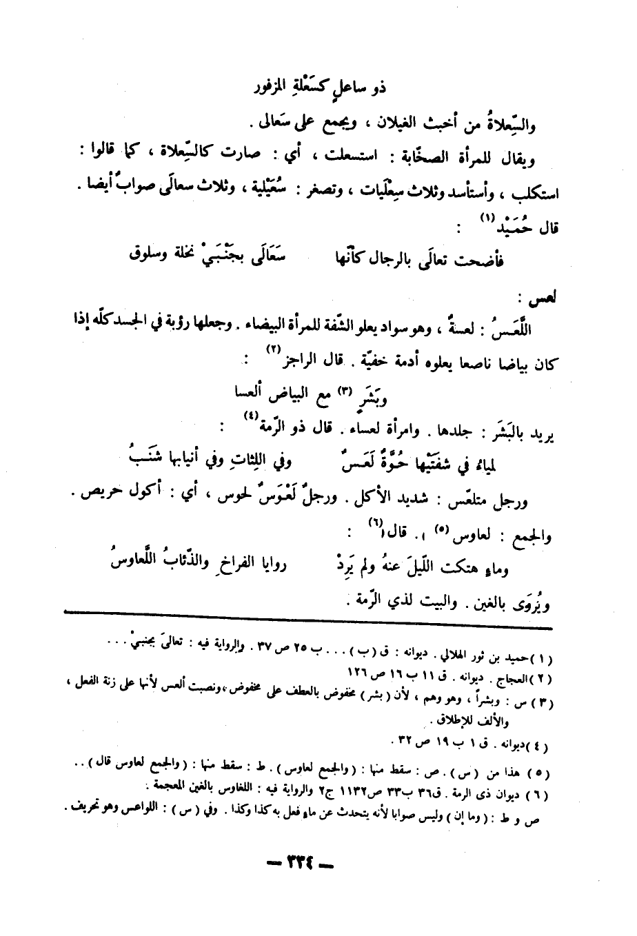 ورجل متلعّس: شديد الأكل. ورجلٌ لَعْوَسٌ لحوس، أي: أكول حريص. والجمع: لعاوس «5» . قال «6» :