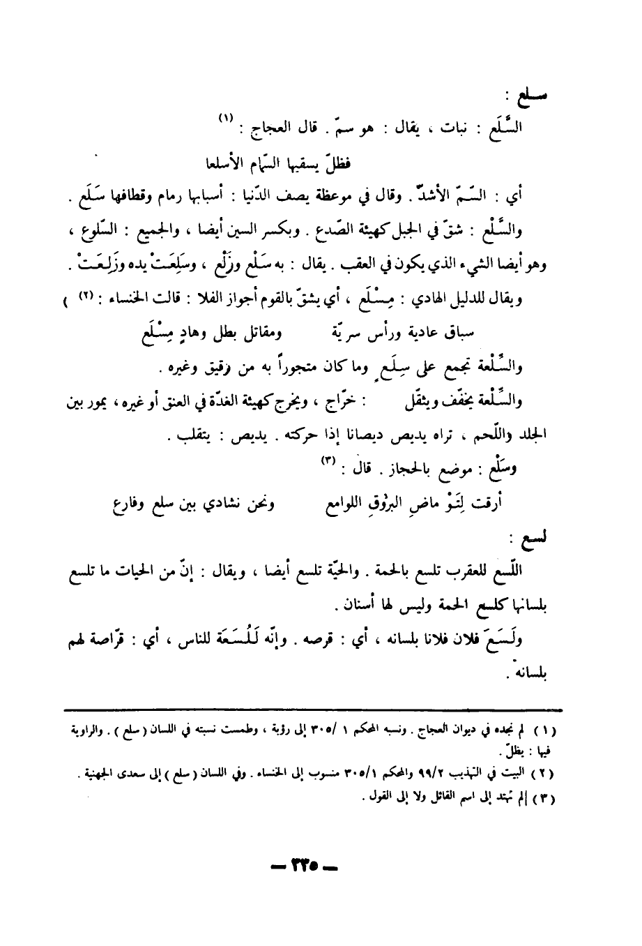 سلع: السَّلَع: نبات، يقال: هو سمّ. قال العجاج: «1»
