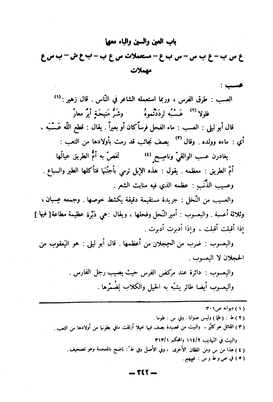 باب العين والسين والباء معهما ع س ب- ع ب س- س ب ع- مستعملات س ع ب- ب ع س- ب س ع مهملات