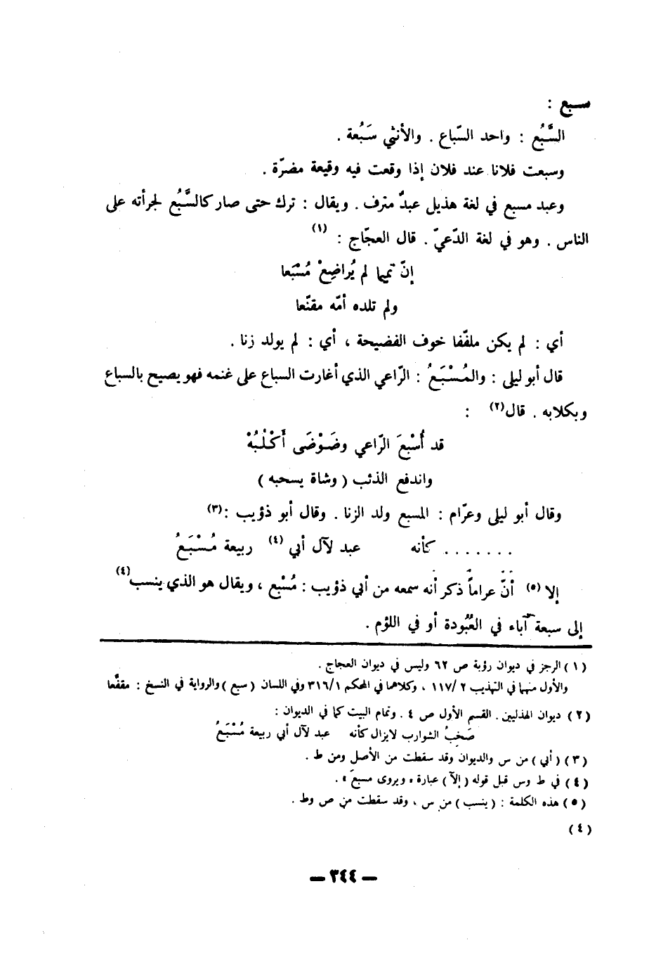 وقال أبو ليلى وعرّام: المسبع ولد الزنى. وقال أبو ذؤيب: «3»