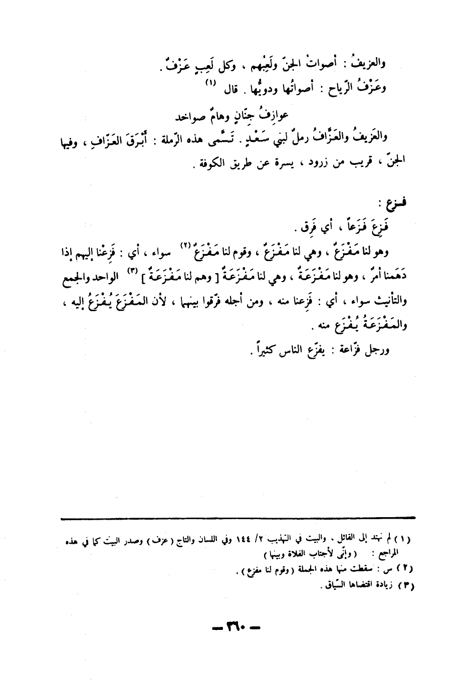 (1) لم نهتد إلى القائل، والبيت في التهذيب 2/ 144 وفي اللسان والتاج (عزف) وصدر البيت كما في هذه المراجع: