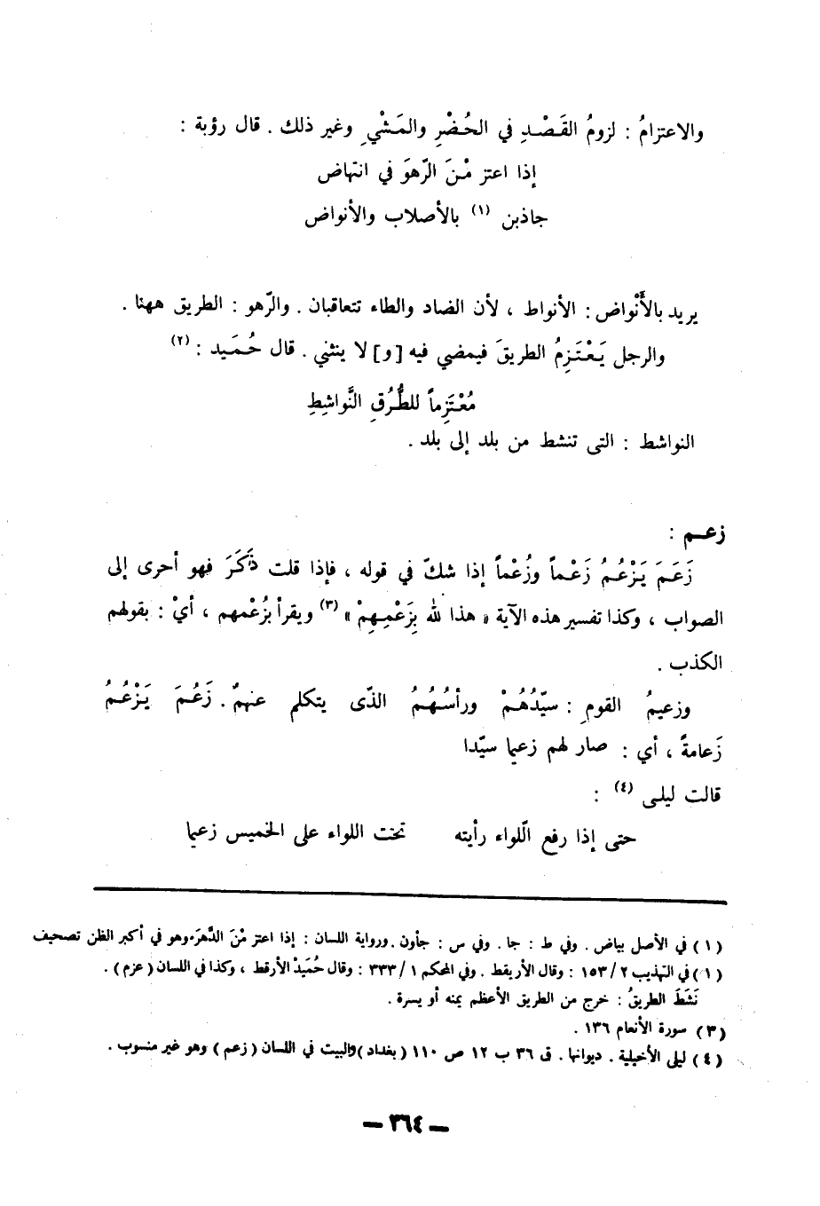 (4) (ليلى الأخيلية) . ديوانها. ق 36 ب 12 ص 110 (بغداد) والبيت في اللسان (زعم) وهو غير منسوب.
