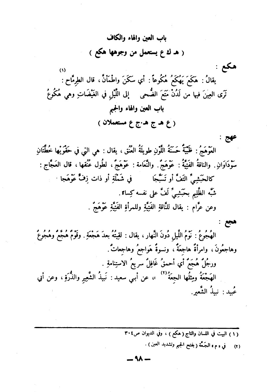 باب العين والهاء والجيم (ع هـ ج، هـ ج ع مستعملان)