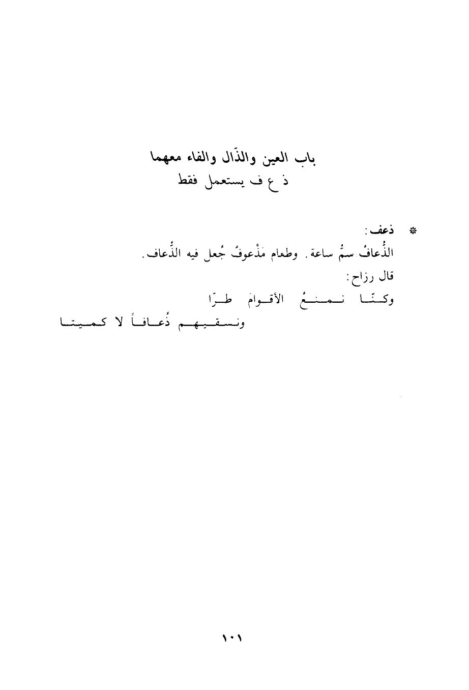 باب العين والذّال والفاء معهما ذ ع ف يستعمل فقط