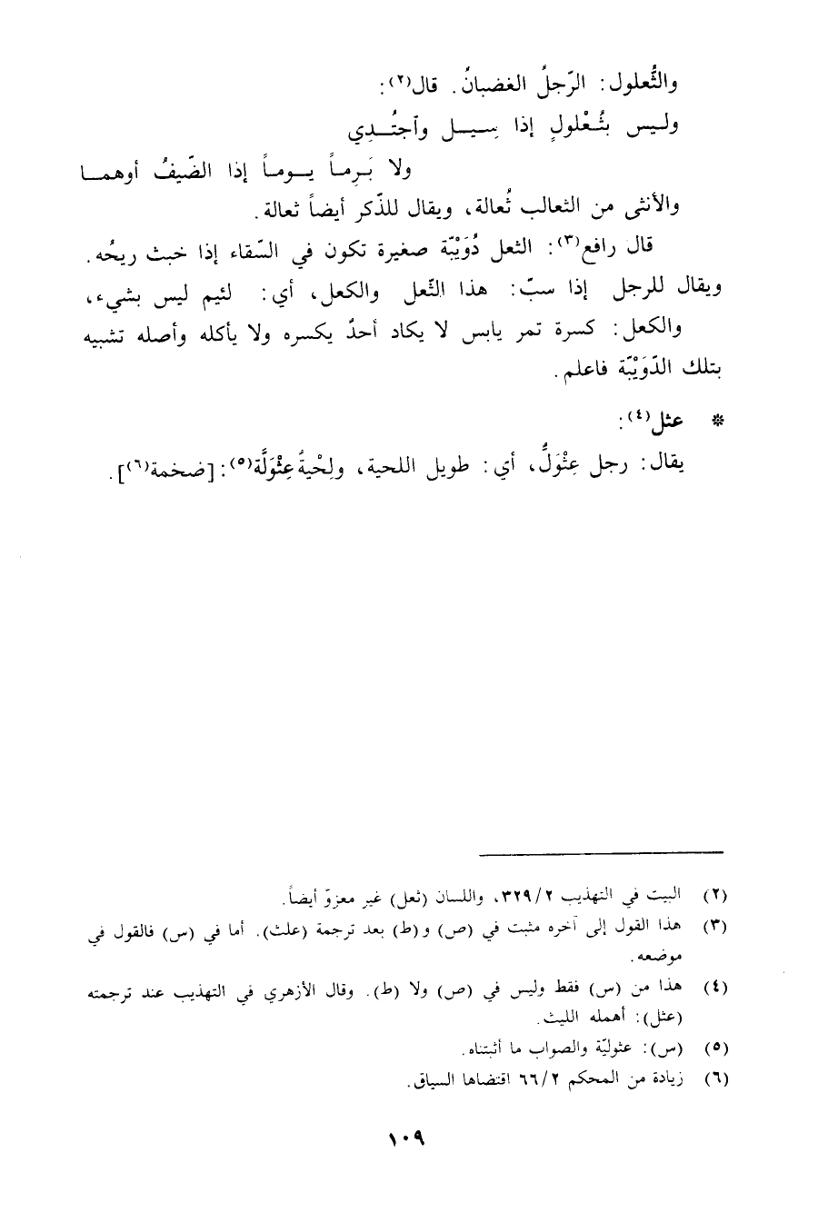 (4) هذا من (س) فقط وليس في (ص) ولا (ط) . وقال الأزهري في التهذيب عند ترجمته (عثل) : أهمله الليث.