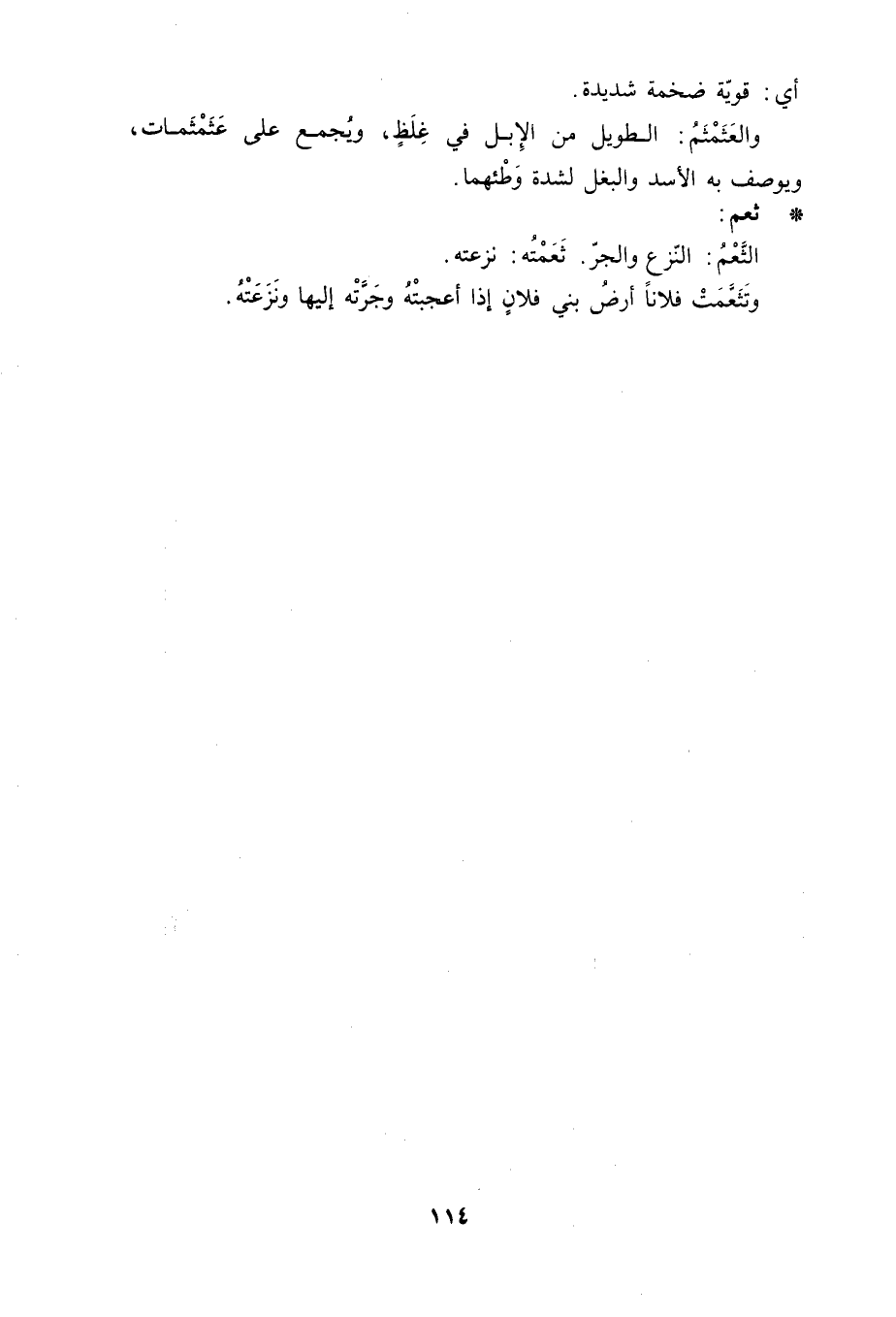 أي: قوّية ضخمة شديدة. والعَثَمْثَمُ: الطويل من الإبل في غِلَظٍ، ويُجمع على عَثَمْثَمات، ويوصف به الأسد والبغل لشدّة وَطْئهما.