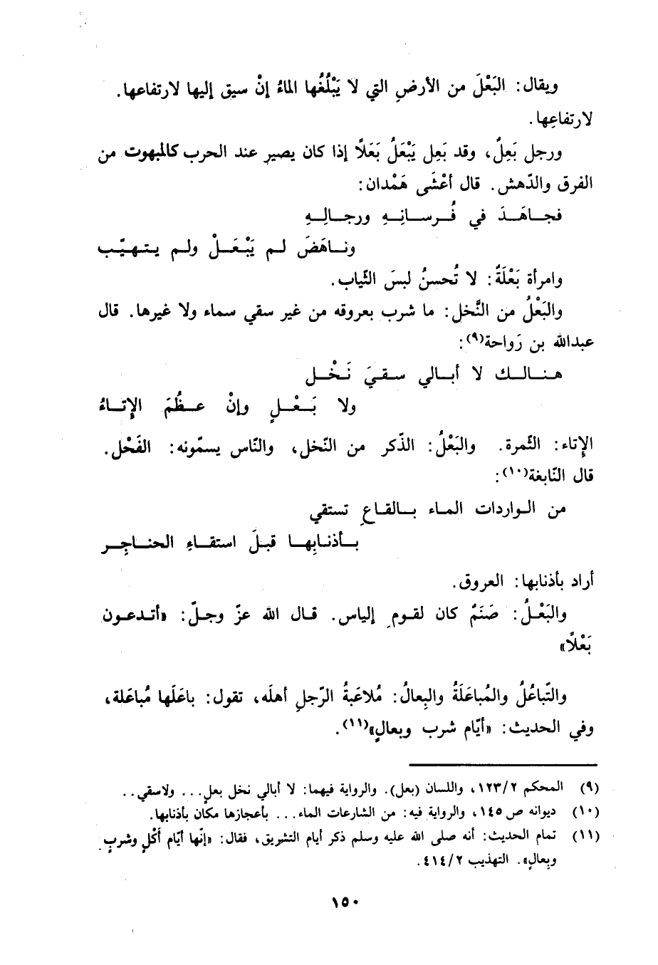 (9) المحكم 2/ 123، واللسان (بعل) . والرواية فيهما: لا أبالي نخل بعل ... ولا سقي..
