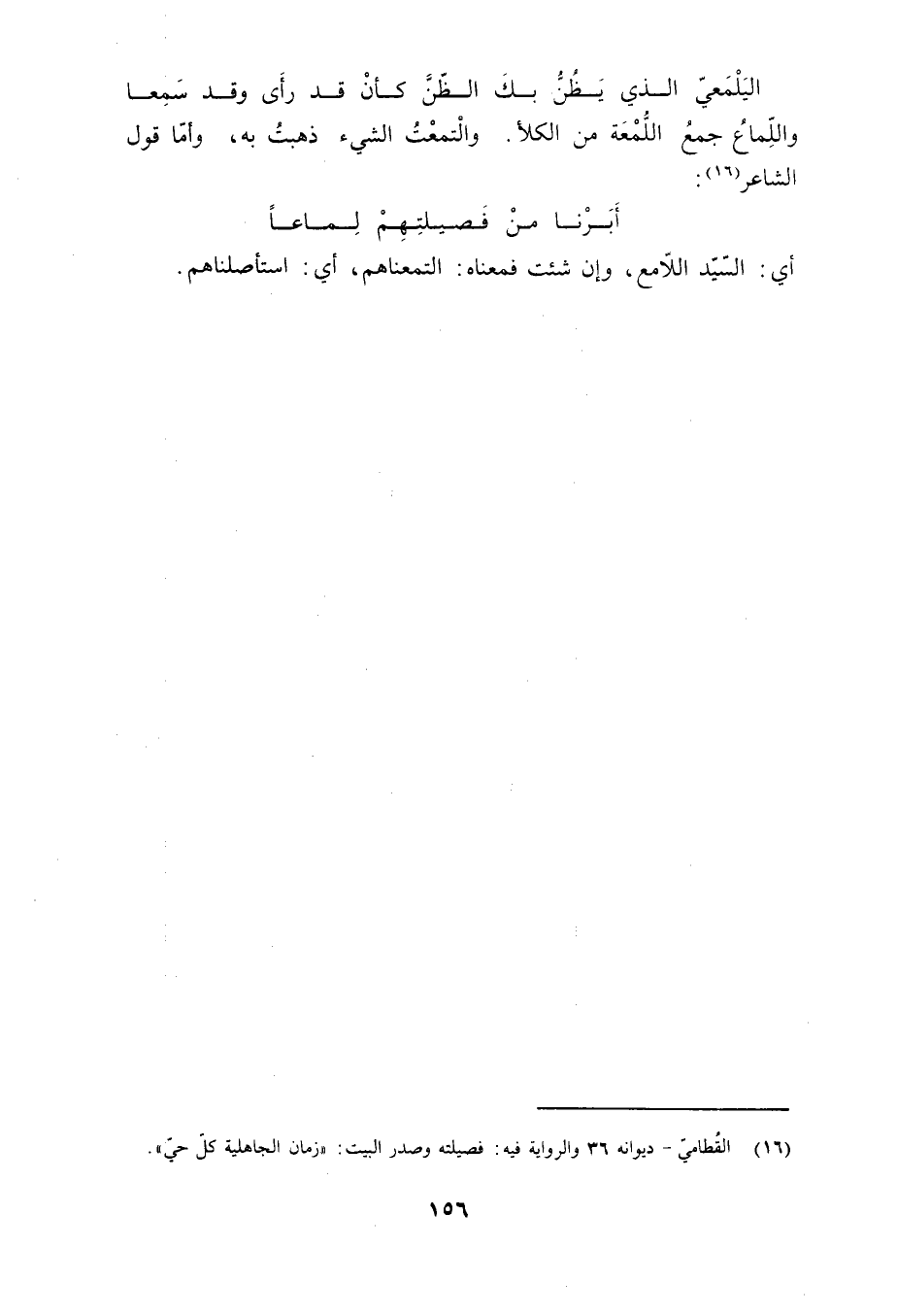 اليَلْمَعيّ الذي يَظُنُّ بكَ الظّنَّ كأنْ قد رأى وقد سَمِعا واللِّماعُ جمعُ اللُّمْعَة من الكلأ. والْتمعْتُ الشيء ذهبتُ به، وأمّا قول الشاعر «16» :