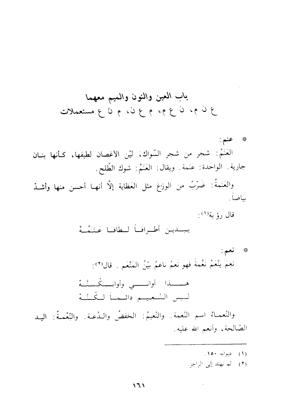 باب العين والنون والميم معهما ع ن م، ن ع م، م ع ن، م ن ع مستعملات