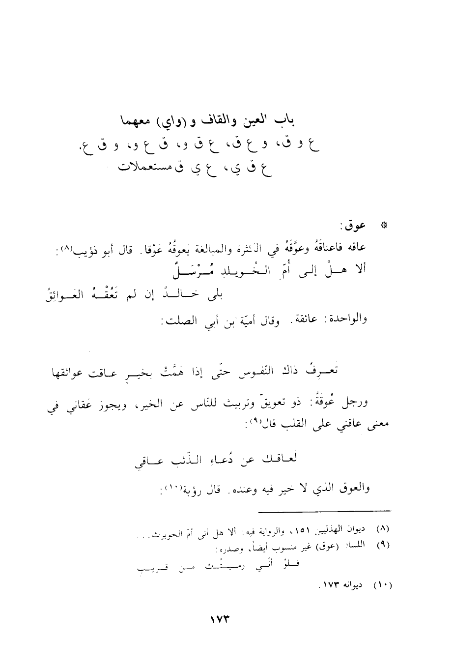 باب العين والقاف و (واي) معهما ع وق، وع ق، ع ق و، ق ع و، وق ع، ع ق ي، ع ي ق مستعملات