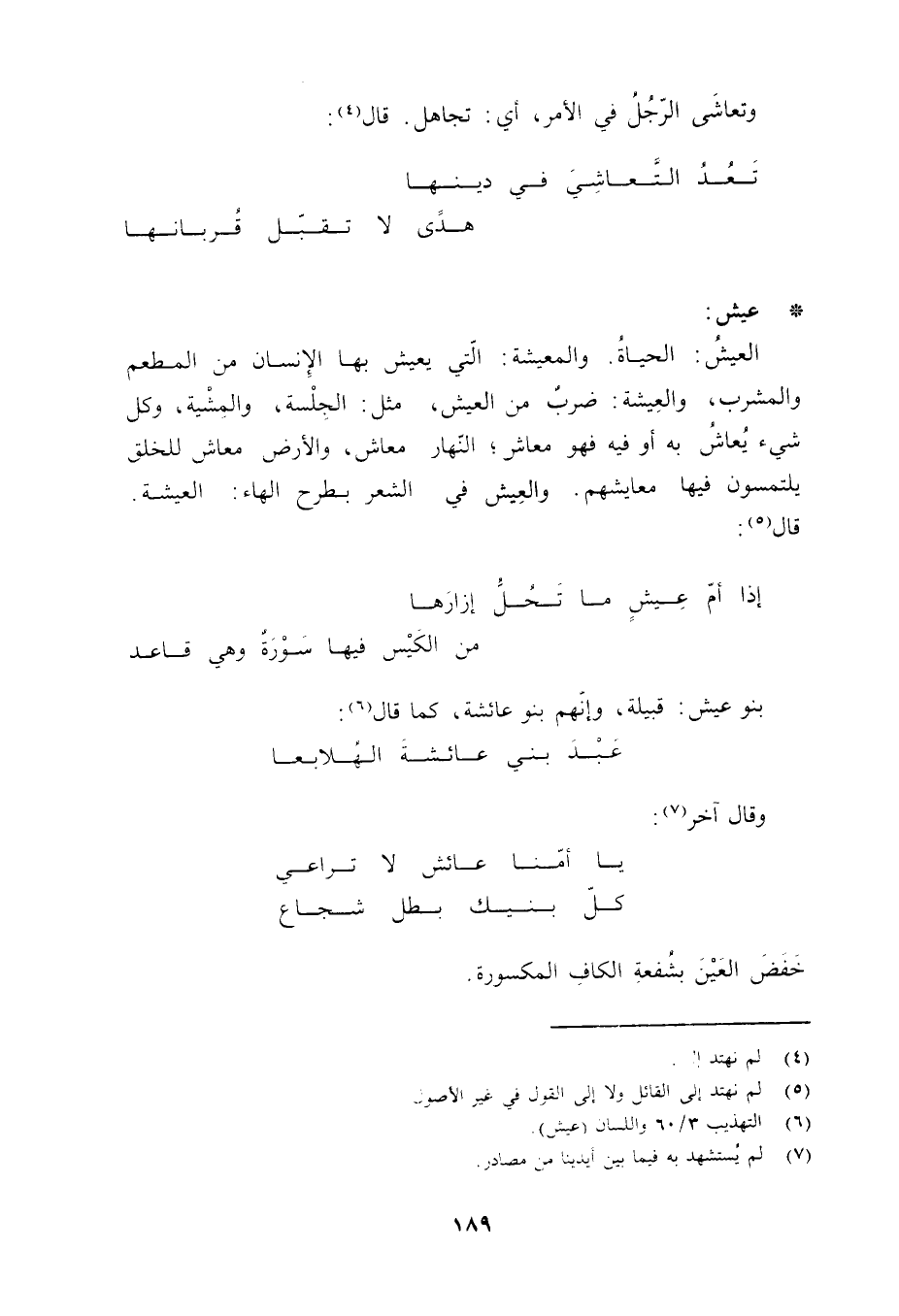 (6) التهذيب 3/ 60 واللسان (عيش) .