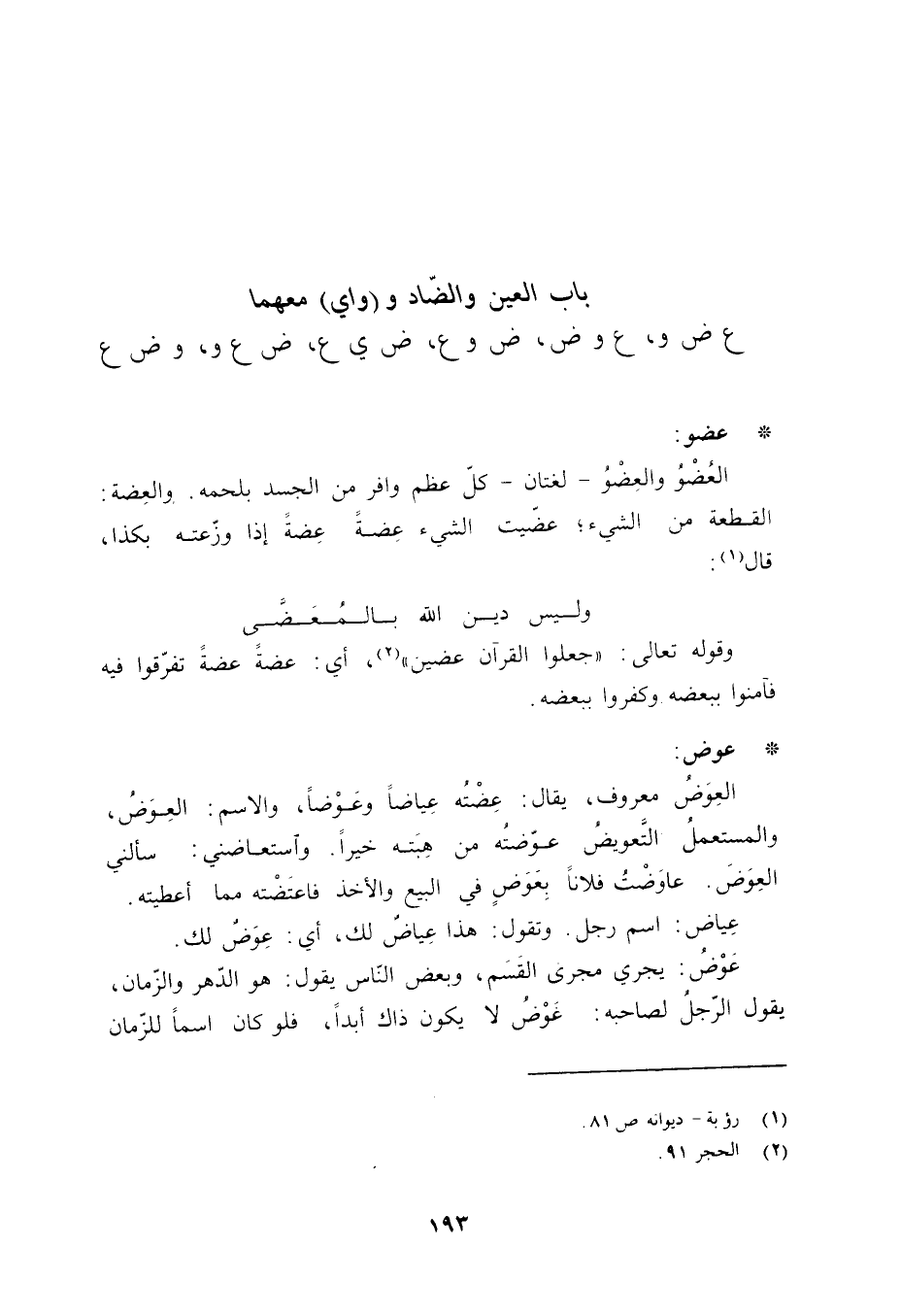 باب العين والضاد و (واي) معهما ع ض و، ع وض، ض وع، ض ي ع، ض ع و، وض ع
