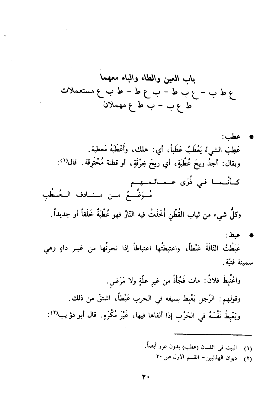 (2) ديوان الهذليين- القسم الأول ص 20