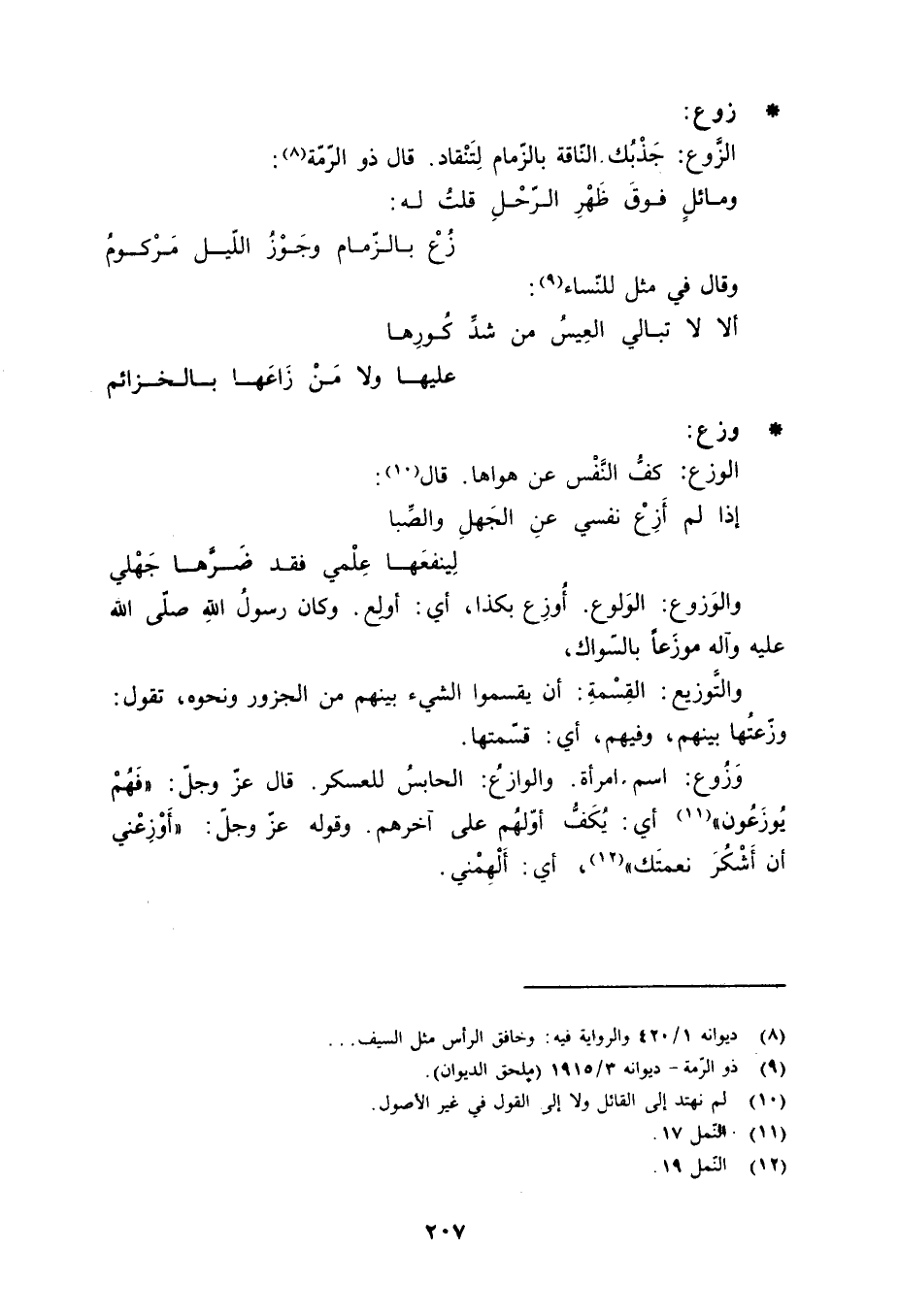 زوع: الزَّوع: جَذْبُك النّاقة بالزّمام لِتَنْقاد. قال ذو الرّمة «8» :