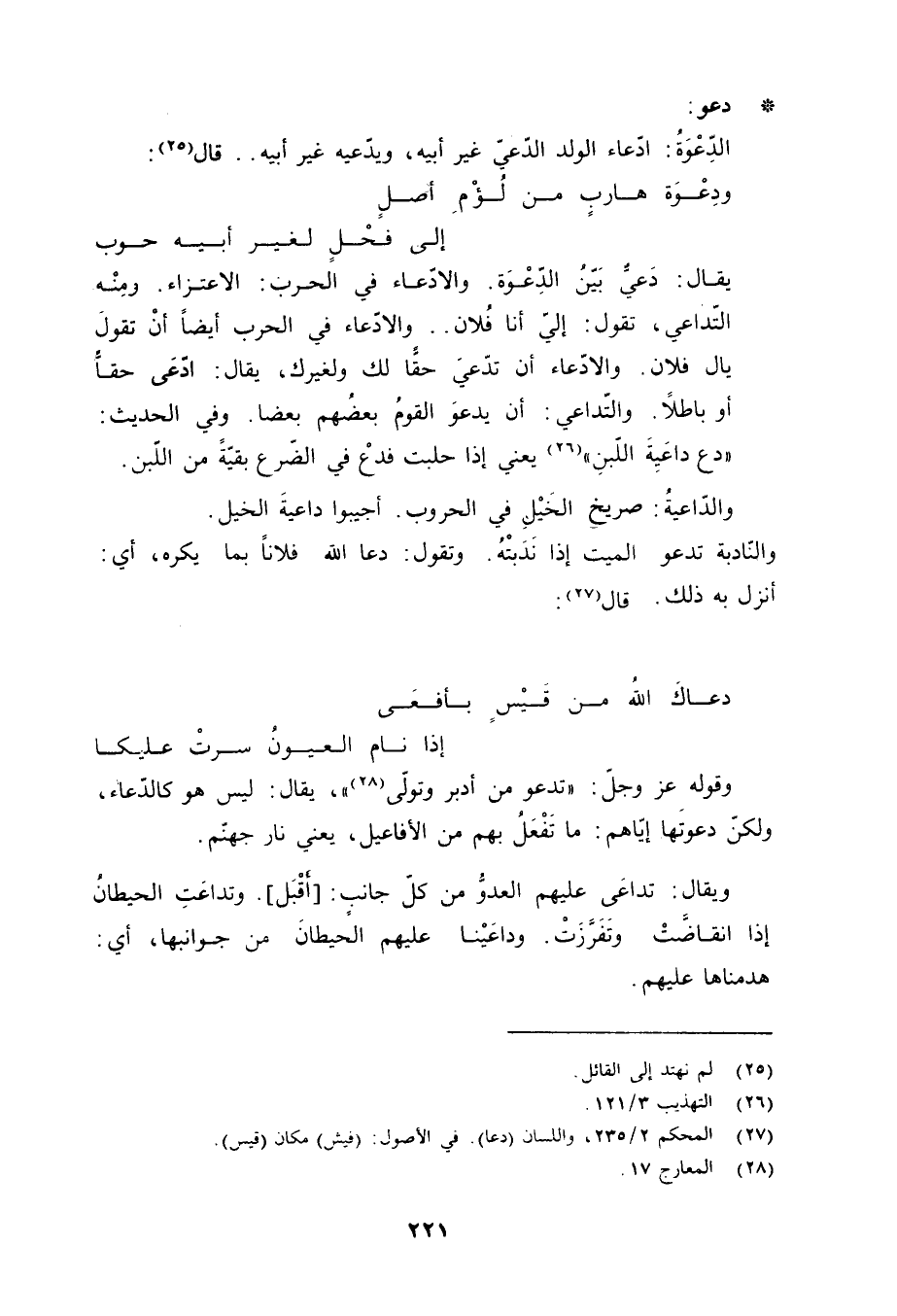 (29) المحكم 2/ 235، واللسان (دعا) . في الأصول: (فيش) مكان (قيس) .