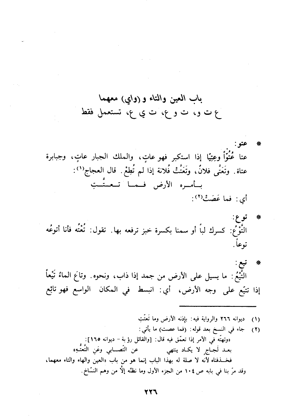 باب العين والتاء و (واي) معهما ع ت و، ت وع، ت ي ع، تستعمل فقط