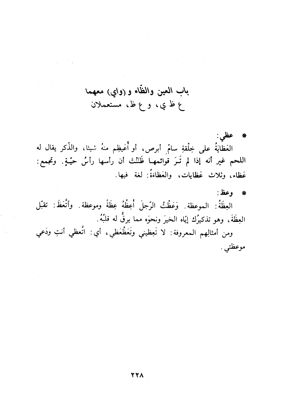 باب العين والظاء و (واي) معهما ع ظ ي، وع ظ، مستعملان