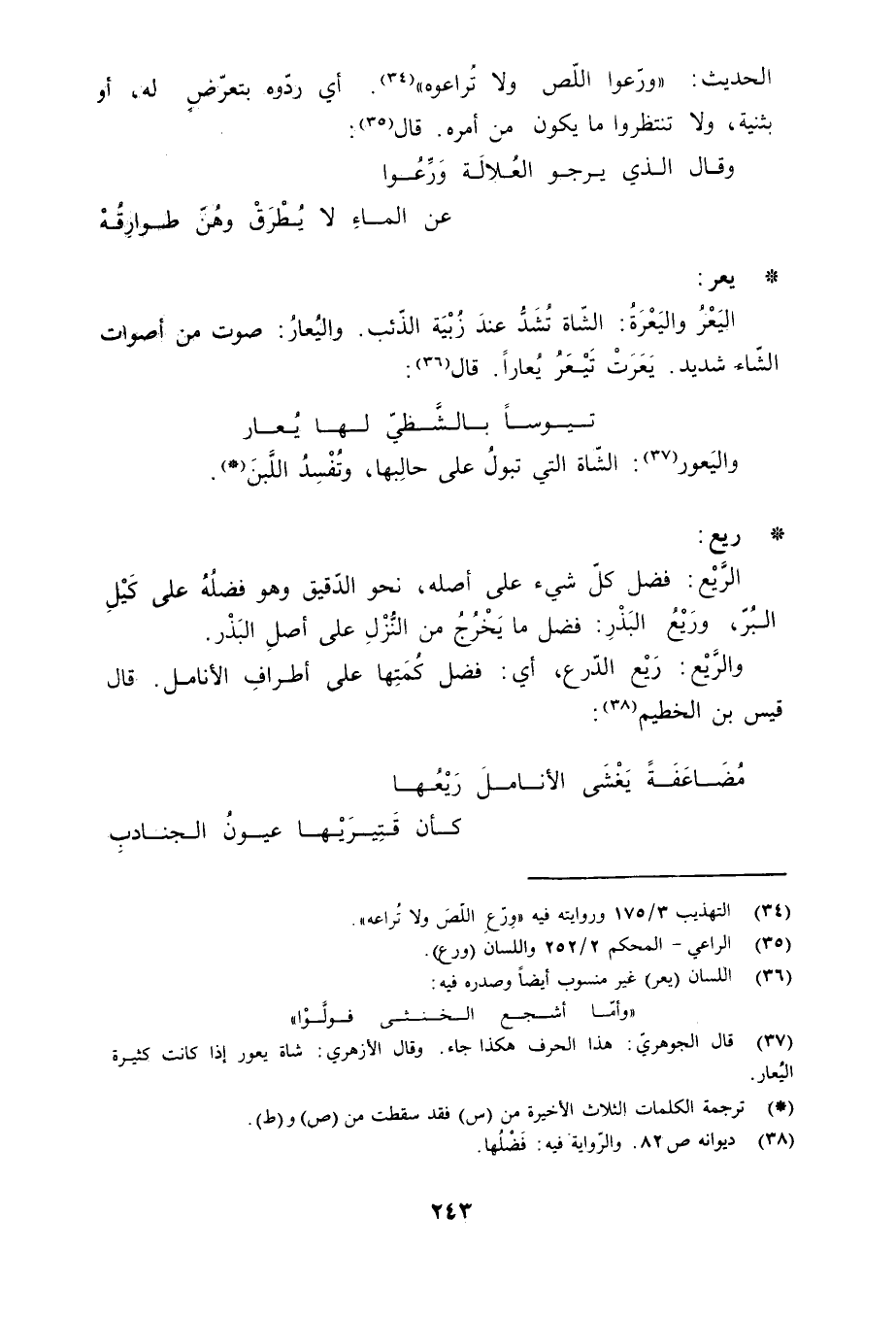(37) قال الجوهري: هذا الحرف هكذا جاء. وقال الأزهري: شاة يعور إذا كانت كثيرة اليعار.