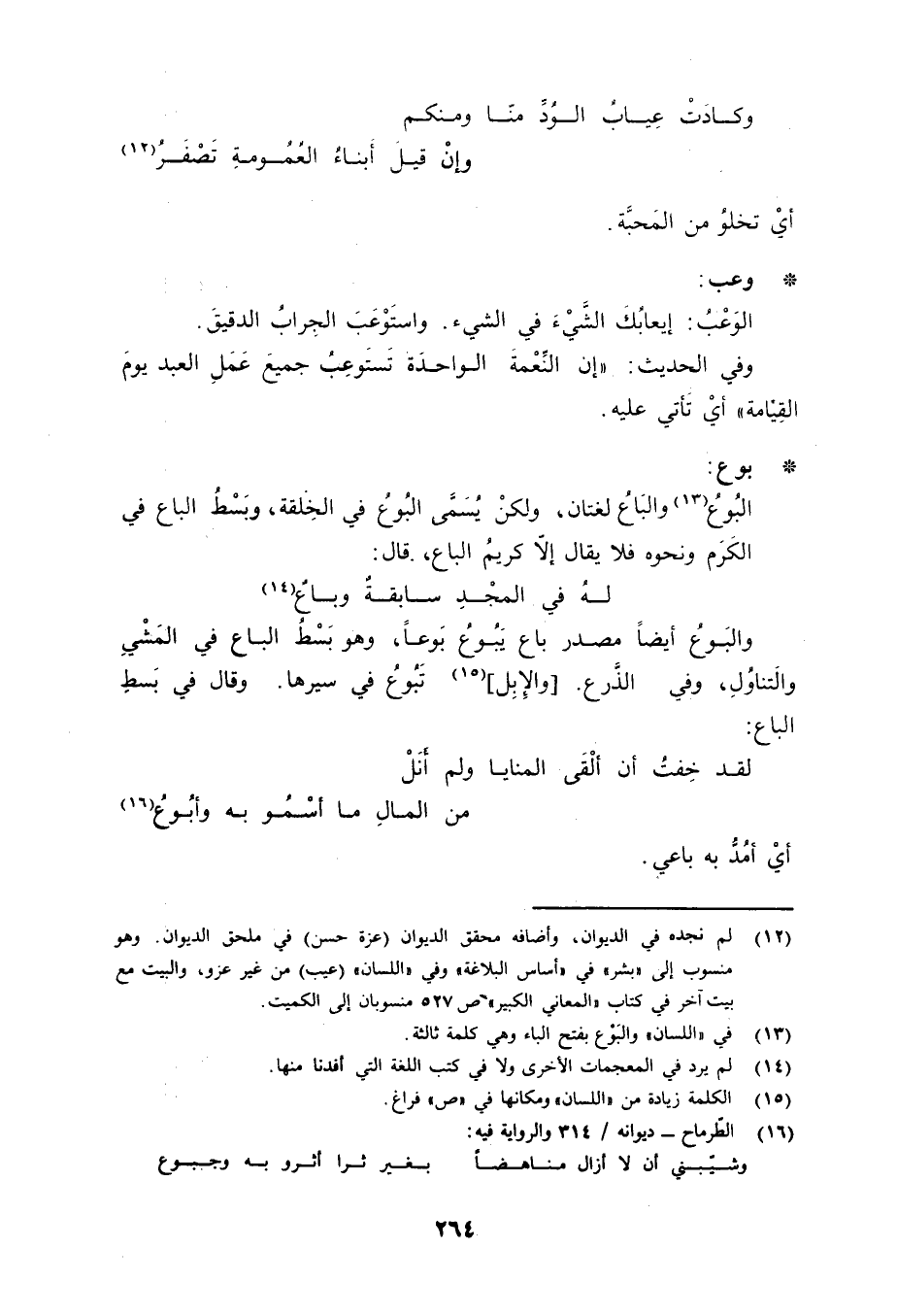 (13) في اللسان والبوع بفتح الباء وهي كلمة ثالثة.
