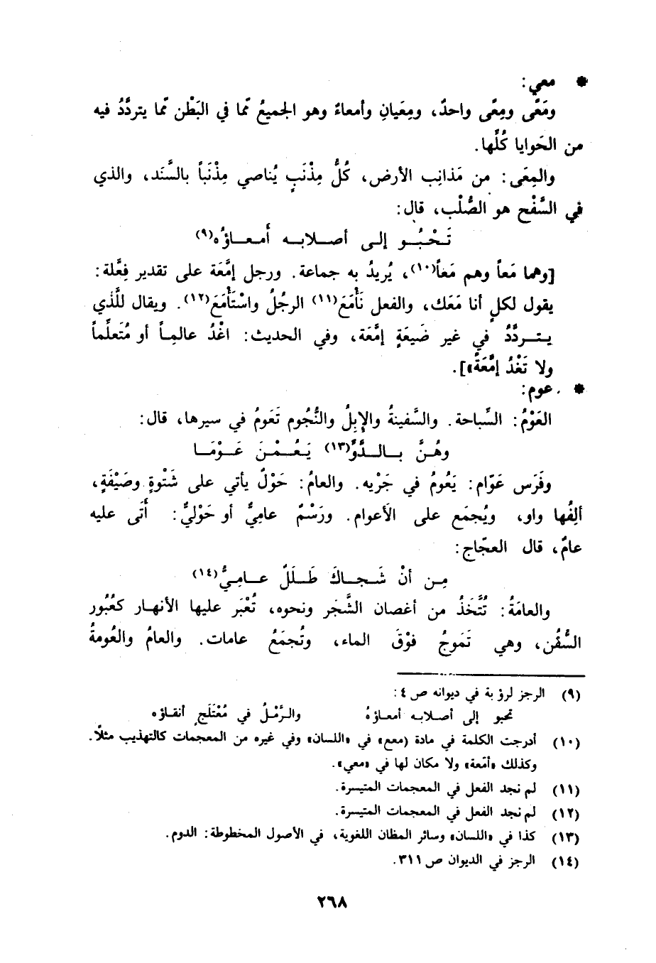 (10) أدرجت الكلمة في مادة (معع في اللسان وفي غيره من المعجمات كالتهذيب مثلا. وكذلك إمعة ولا مكان لها في معي.