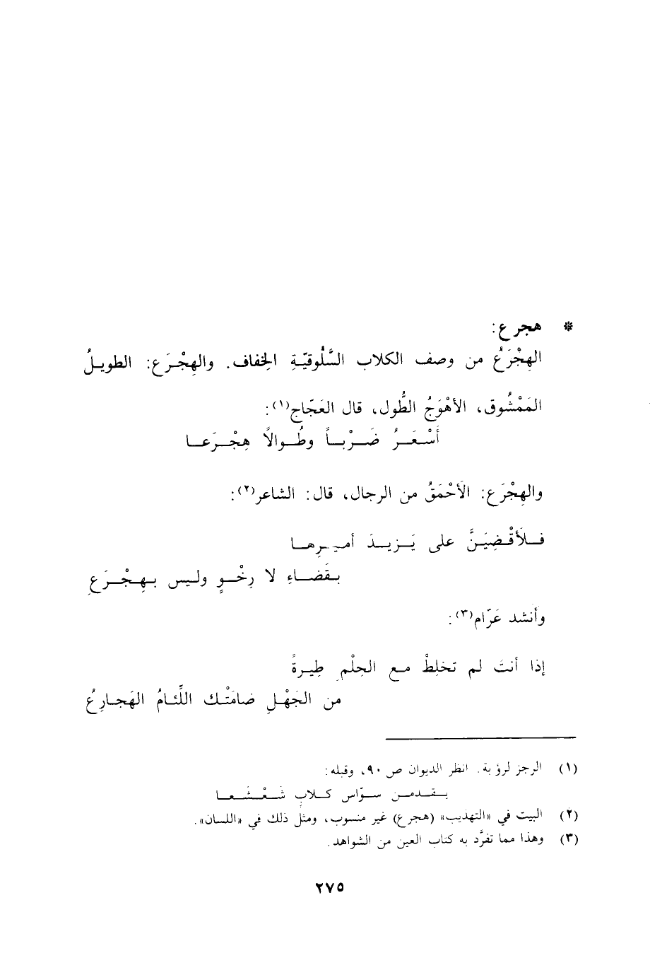 (3) وهذا مما تفرد به كتاب العين من الشواهد.