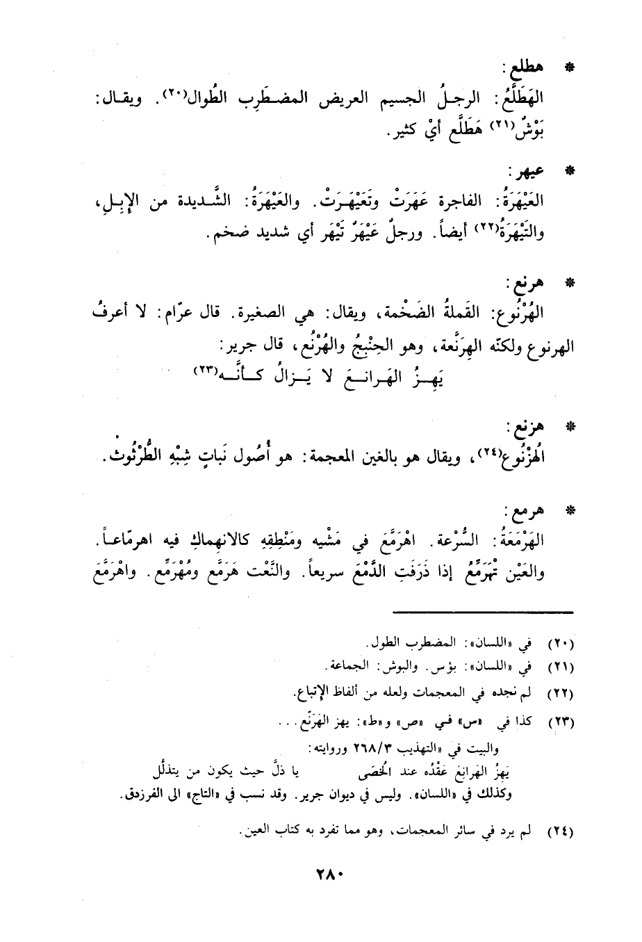 (24) لم يرد في سائر المعجمات، وهو مما تفرد به كتاب العين.