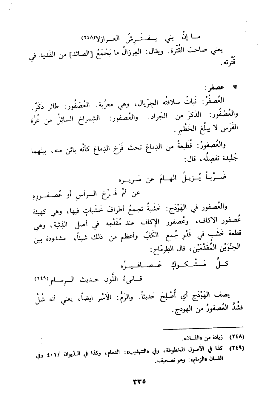 ما إنْ يني يفتَرِشُ العِرازلا «248»