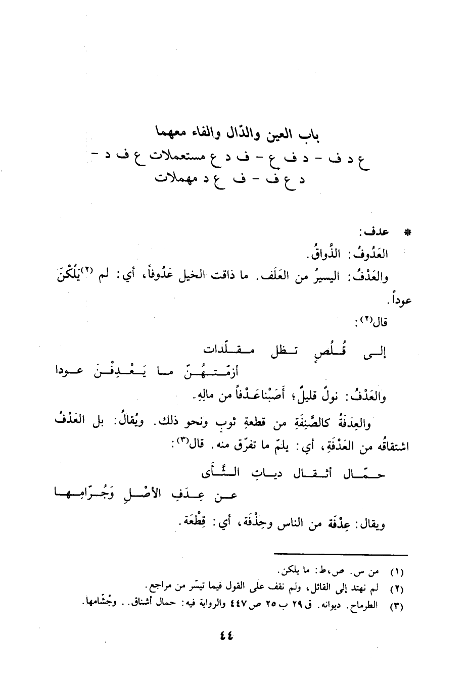 باب العين والدّال والفاء معهما ع د ف- د ف ع- ف د ع مستعملات ع ف د- د ع ف- ف ع د مهملات