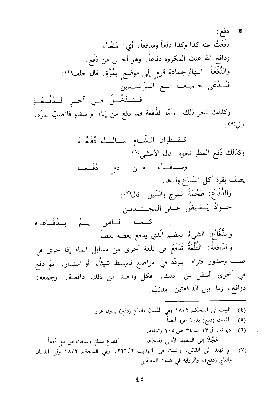 (4) البيت في المحكم 2/ 18 وفي اللسان والتاج (دفع) بدون عزو.