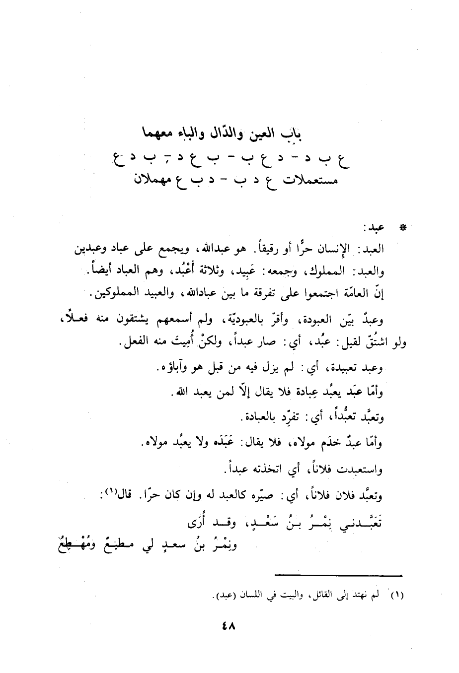 باب العين والدال والباء معهما ع ب د- د ع ب- ب ع د- ب د ع مستعملات ع د ب- د ب ع مهملان