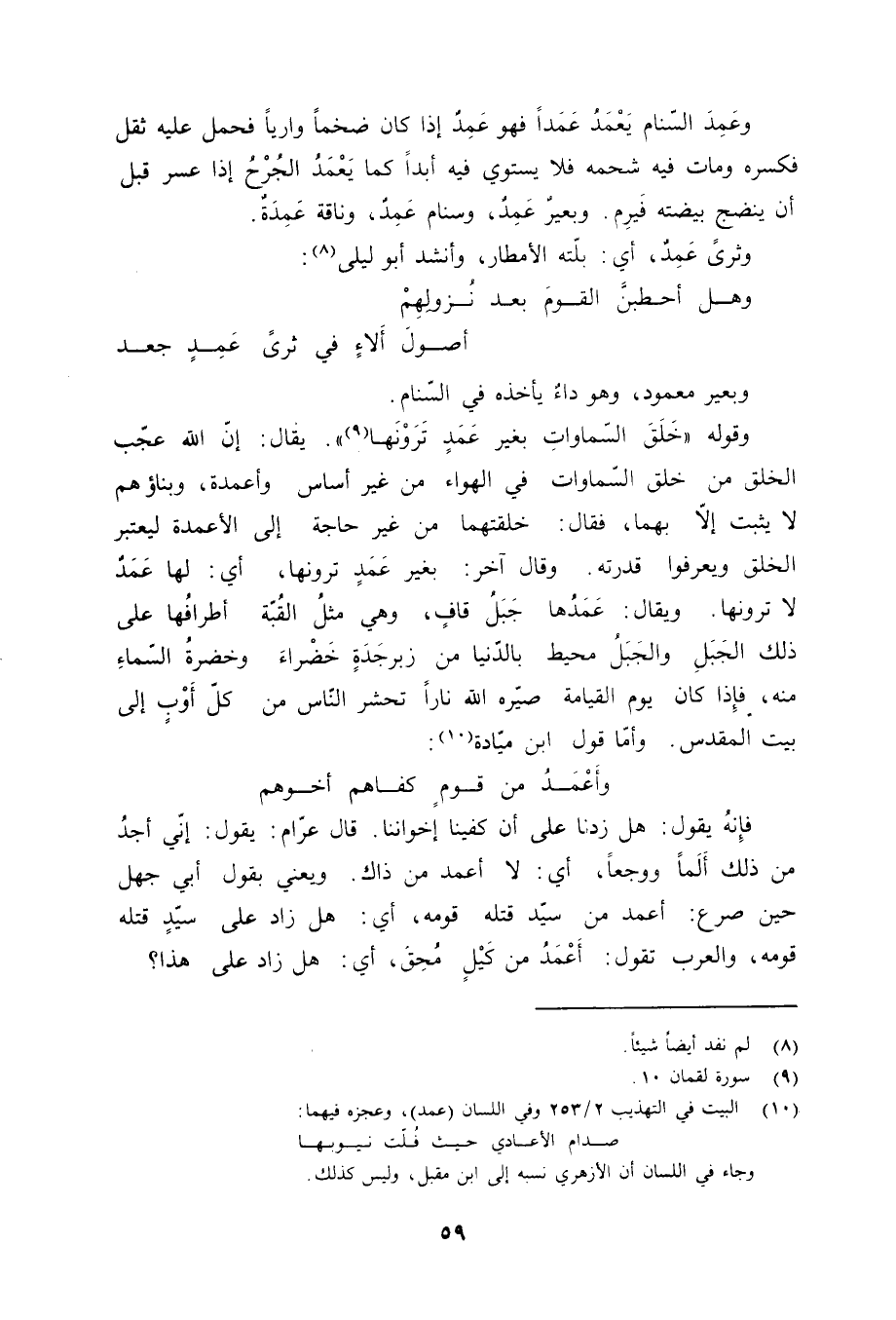 (10) البيت في التهذيب 2/ 253 وفي اللسان (عمد) ، وعجزه فيهما: