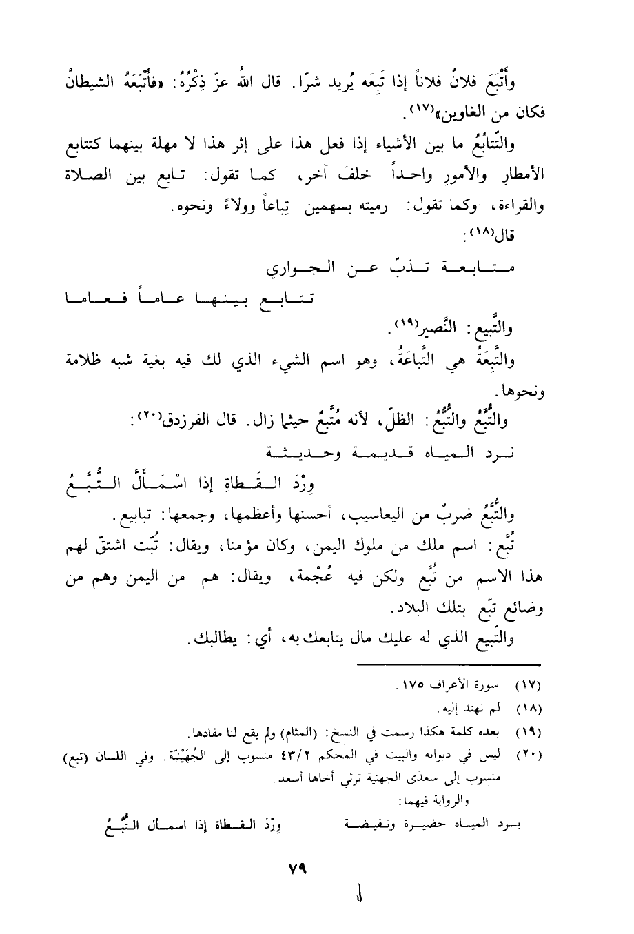 وأَتْبَعَ فلانٌ فلاناً إذا تَبِعَه يُريد شرّا. قال الله عزّ ذِكْرُهُ: فَأَتْبَعَهُ الشَّيْطانُ فَكانَ مِنَ الْغاوِينَ «17» والتّتابُعُ ما بين الأشياء إذا فعل هذا على إثر هذا لا مهلة بينهما كتتابع الأمطارِ والأمورِ واحدا خلف آخر، كما تقول: تابع بين الصلاة والقراءة، وكما تقول: رميته بسهمين تِباعاً وولاءً ونحوه. قال «18» :