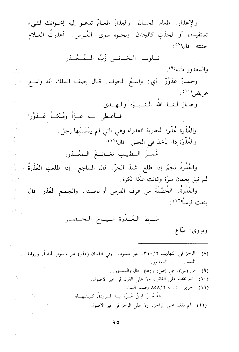 (8) الرجز في التهذيب 2/ 310. غير منسوب. وفي اللسان (عذر) غير منسوب أيضا. ورواية اللسان: ... المعذور.