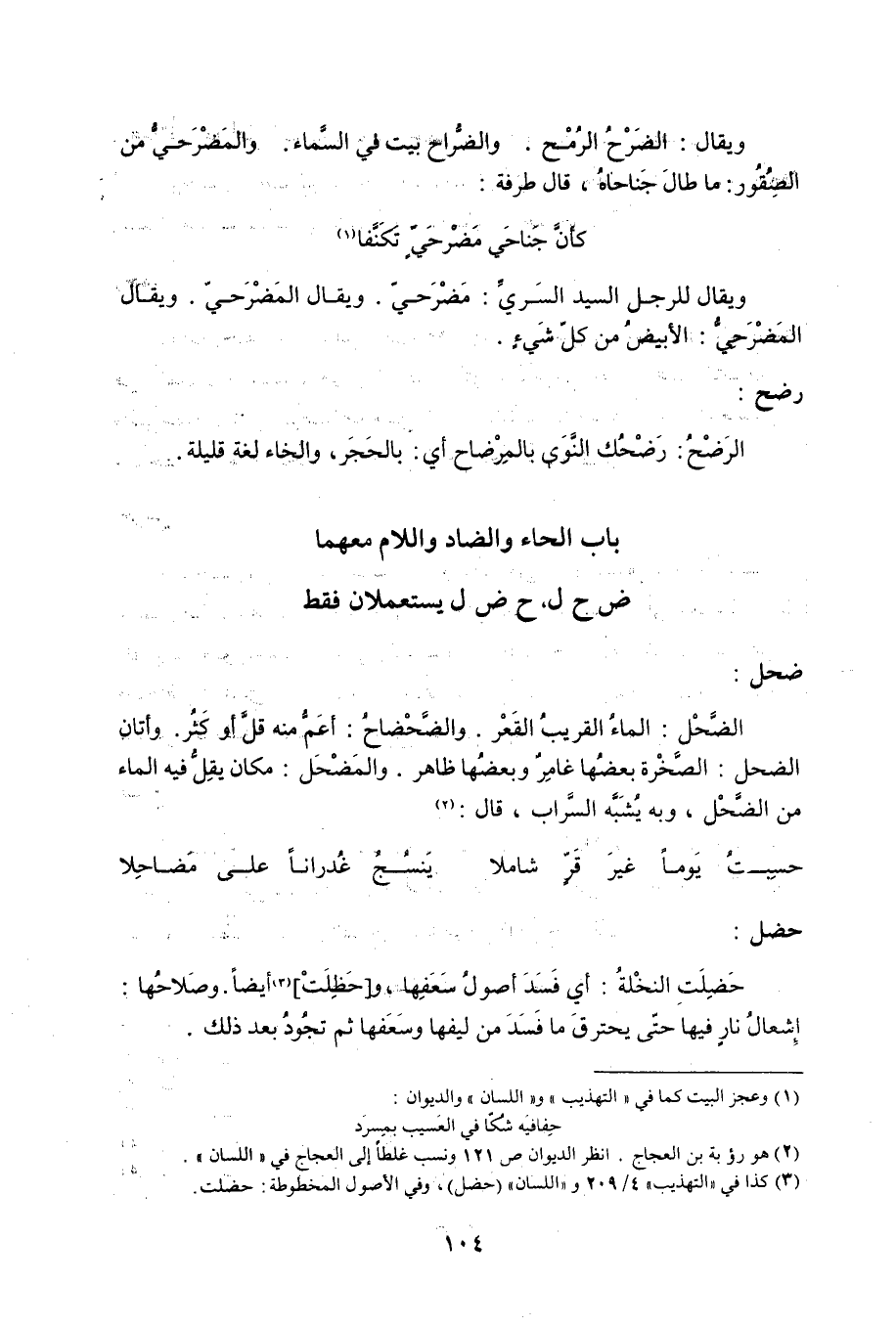 باب الحاء والضاد واللام معهما ض ح ل، ح ض ل يستعملان فقط