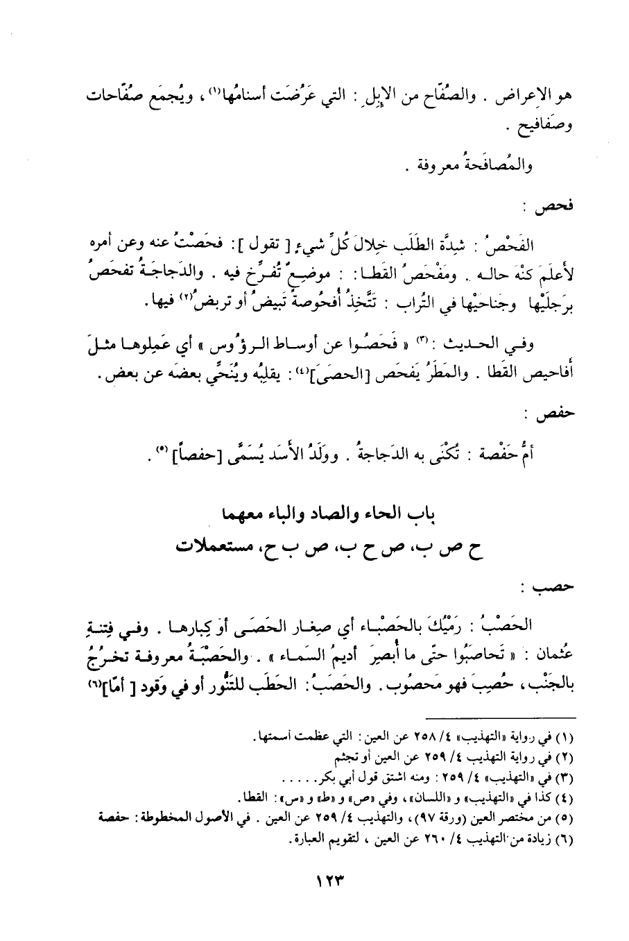 (5) من مختصر العين (ورقة 97) ، والتهذيب 4/ 259 عن العين. في الأصول المخطوطة: حفصة