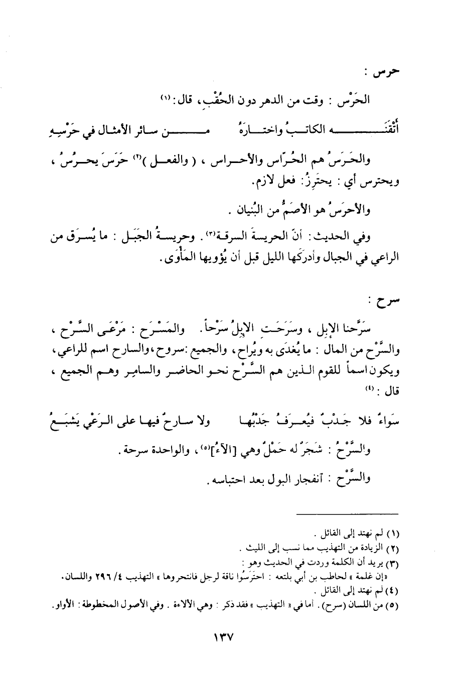 (3) يريد أن الكلمة وردت في الحديث وهو: أن غلمة لحاطب بن أبي بلتعة: احترسوا ناقة لرجل فانتحروها التهذيب 4/ 296 واللسان.