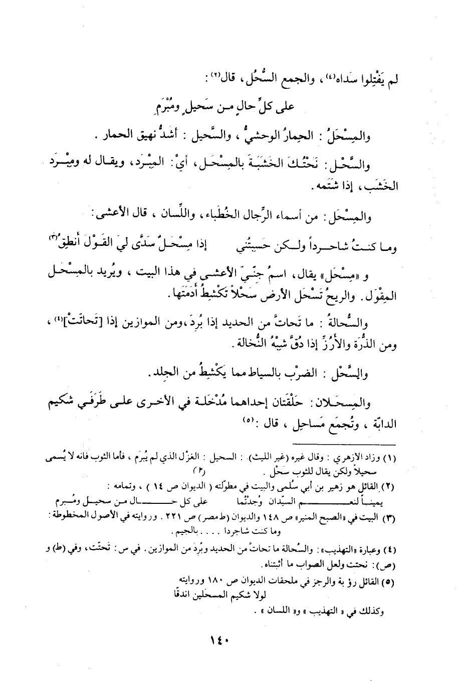 ومِسْحَل يقال، اسمُ جِنّيّ الأعشى في هذا البيت، ويُريد بالمِسْحَل المِقْوَل. والريحُ تَسْحَل الأرض سَحْلاً تَكْشِطُ أَدَمَتَها. والسُّحالةُ: ما تحات من الحديد إذا بُرِدَ، ومن الموازين إذا [تَحاتّتْ] «4» ، ومن الذُّرَة والأَرُزِّ إذا دُقَّ شِبْهُ النُّخالة. والسَّحْل: الضرْب بالسياط مما يَكْشِطُ من الجِلد. والمِسَحلان: حَلْقَتان إحداهما مُدْخَلة في الأخرى على طَرَفَي شَكيم الدابّة، وتُجمَع مَساحِل، قال: «5»