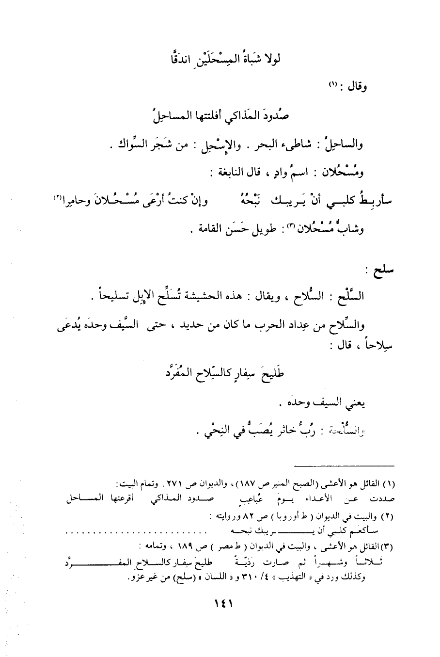 (1) القائل هو (الأعشى) (الصبح المنير ص 187) ، والديوان ص 271. وتمام البيت: