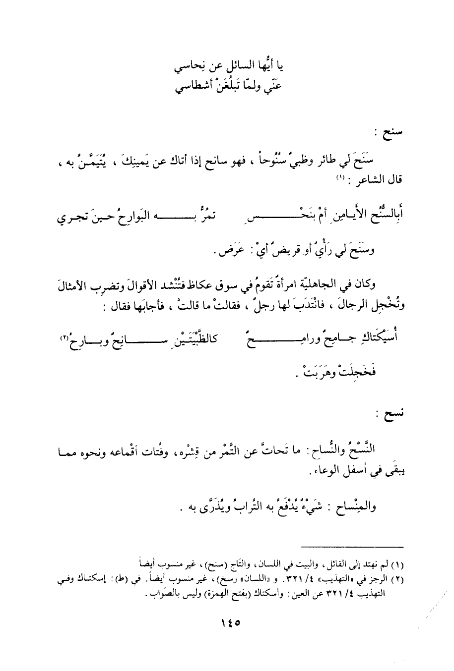 (2) الرجز في التهذيب 4/ 321. واللسان (رسخ) ، غير منسوب أيضا. في (ط) : إسكتاك وفي التهذيب 4/ 321 عن العين: وأسكتاك (بفتح الهمزة) وليس بالصواب.