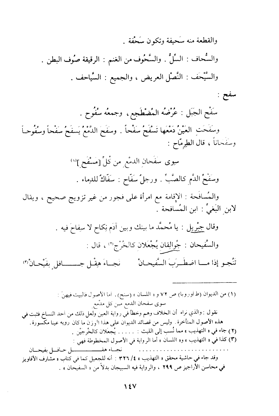 (3) كذا في التهذيب واللسان أما الرواية في الأصول المخطوطة فهي: