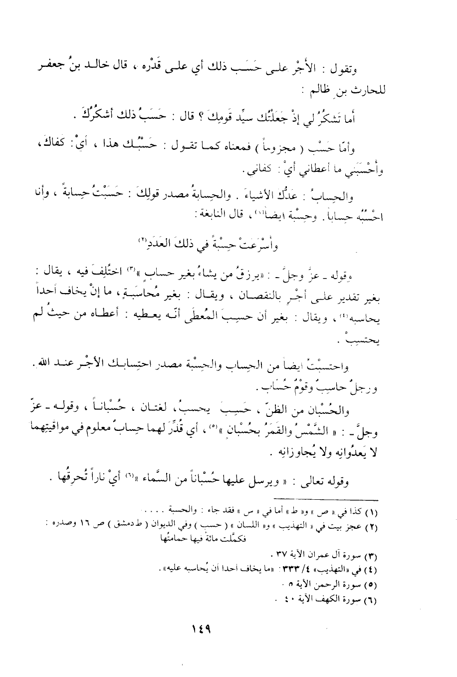 (2) عجز بيت في التهذيب واللسان (حسب) وفي الديوان (ط دمشق) ص 16 وصدره: