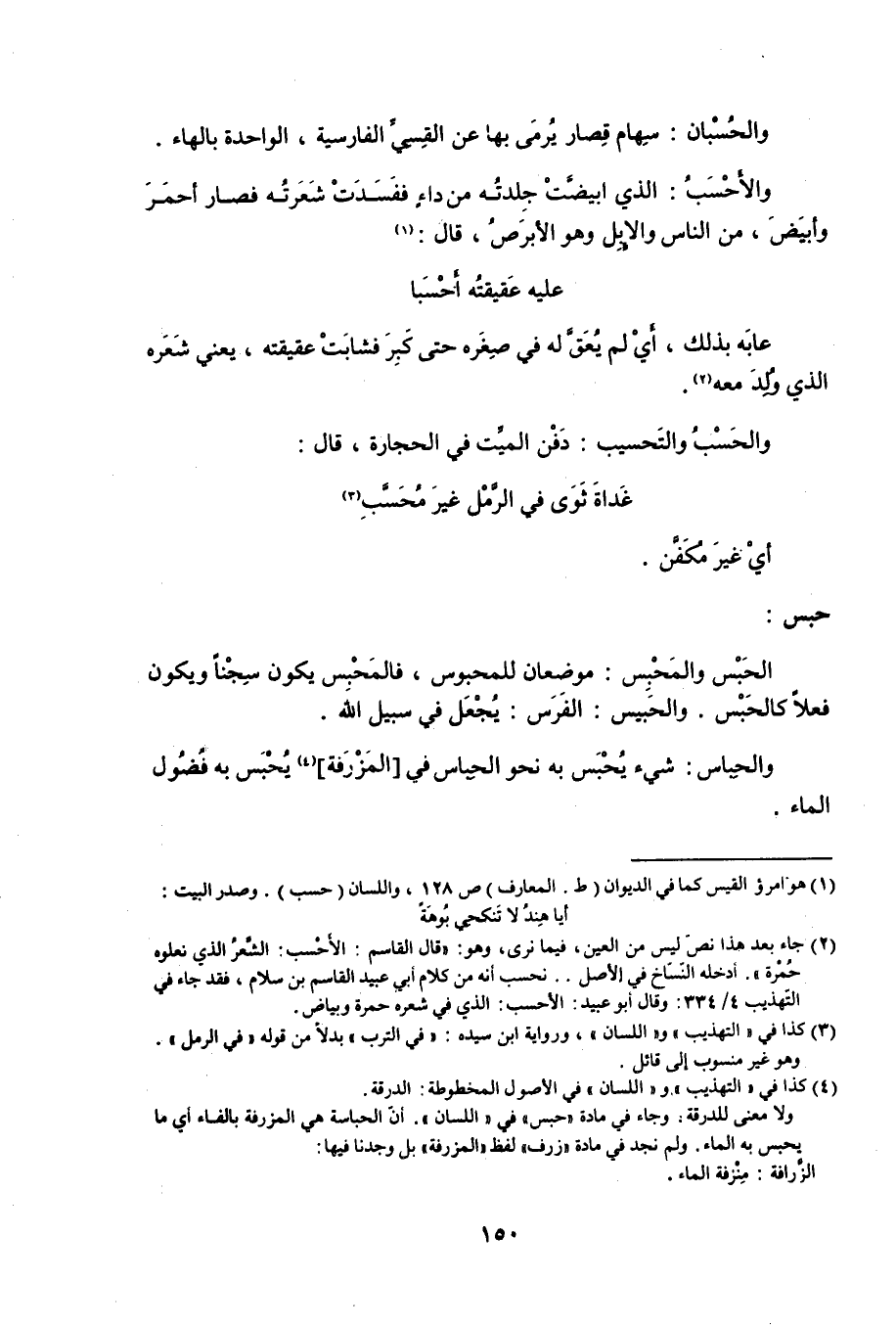 (2) جاء بعد هذا نص ليس من العين، فيما نرى، وهو: قال القاسم: الأحسب: الشعر الذي نعلوه حمرة. أدخله النساخ في الأصل.. نحسب أنه من كلام أبي عبيد القاسم بن سلام، فقد جاء في التهذيب 4/ 334: وقال أبو عبيد: الأحسب: الذي في شعره حمرة وبياض.