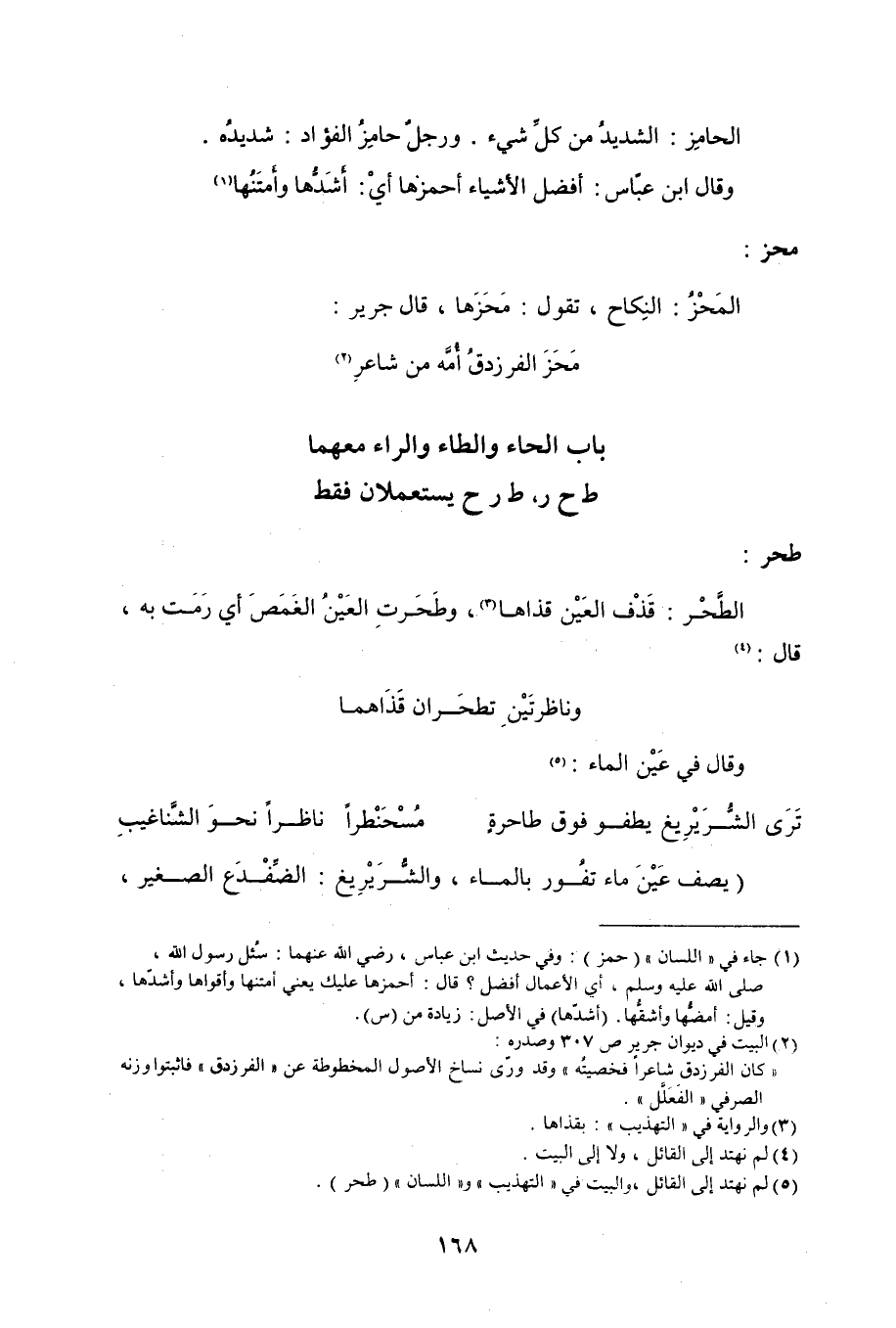 باب الحاء والطاء والراء معهما ط ح ر، ط ر ح يستعملان فقط