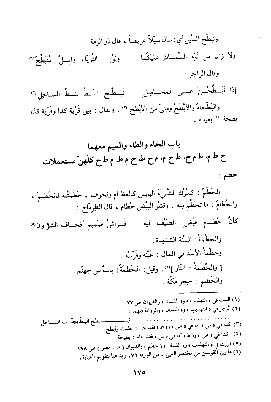 باب الحاء والطاء والميم معهما ح ط م، ط م ح، ط ح م، م ح ط، ح م ط، م ط ح كلهن مستعملات