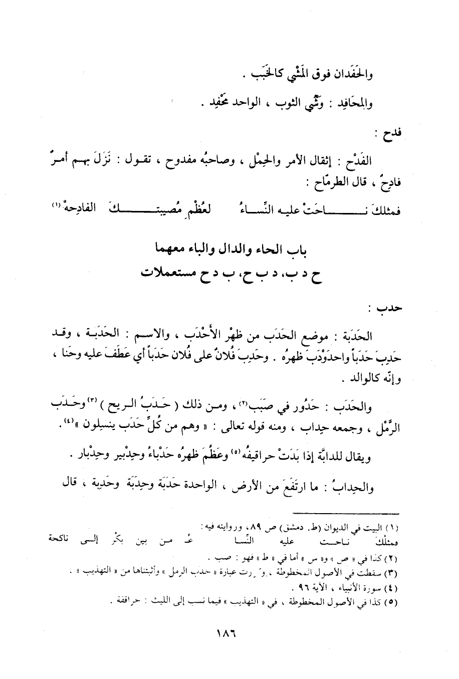 باب الحاء والدال والباء معهما ح د ب، د ب ح، ب د ح مستعملات
