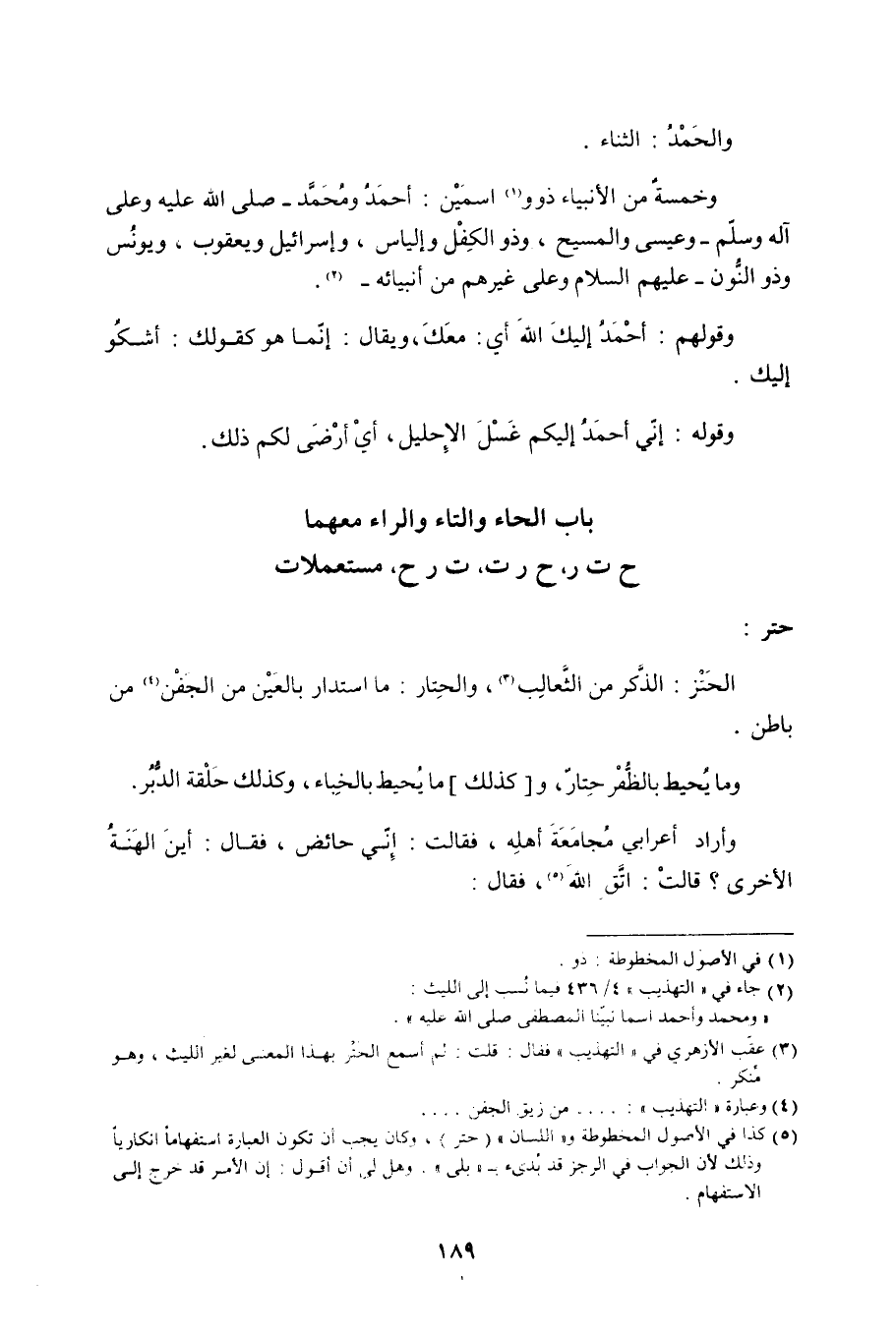 (2) جاء في التهذيب 4/ 436 فيما نسب إلى الليث: ومحمد وأحمد اسما نبينا المصطفى صلى الله عليه.