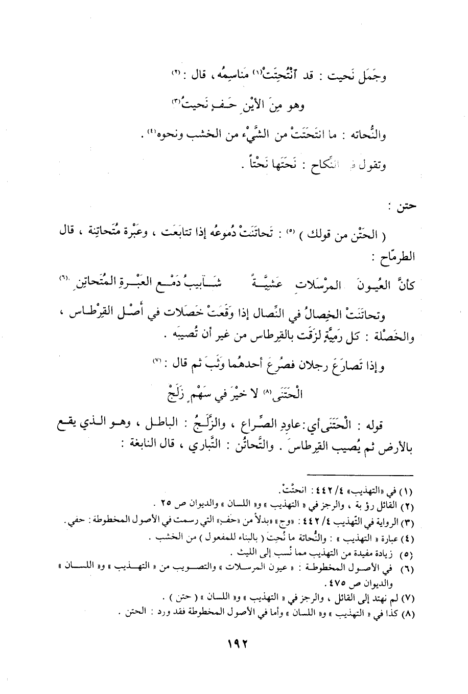 (8) كذا في التهذيب واللسان وأما في الأصول المخطوطة فقد ورد: الحتن.