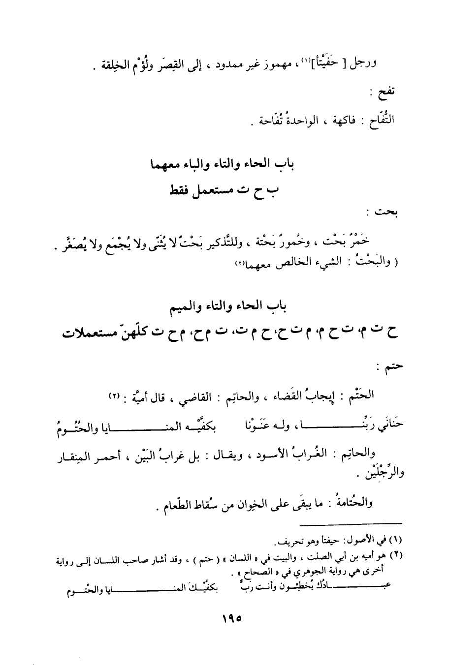 باب الحاء والتاء والباء معهما ب ح ت مستعمل فقط