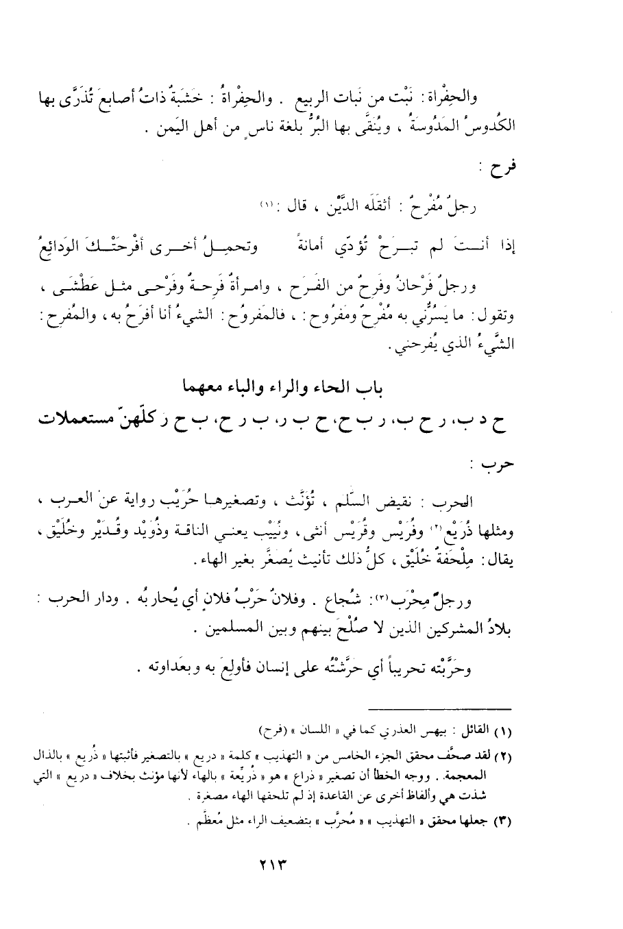 (3) جعلها محقق التهذيب محرب بتضعيف الراء مثل معظم.