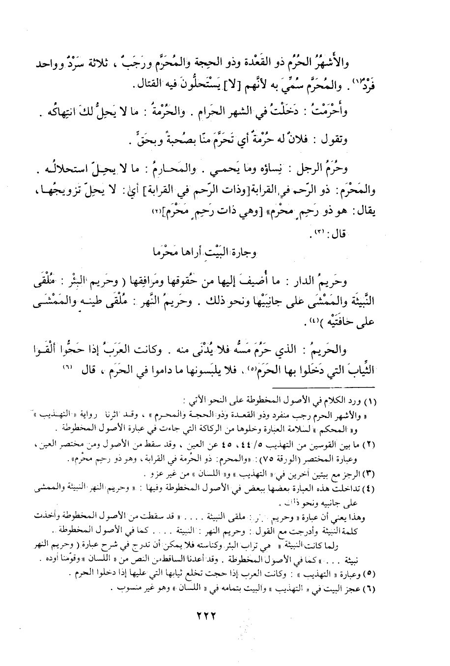 (1) ورد الكلام في الأصول المخطوطة على النحو الآتي: والأشهر الحرم رجب منفرد وذو القَعْدة وذو الحِجة والمُحَرَّم، وقد آثرنا رواية التهذيب والمحكم لسلامة العبارة وخلوها من الركاكة التي جاءت في عبارة الأصول المخطوطة.